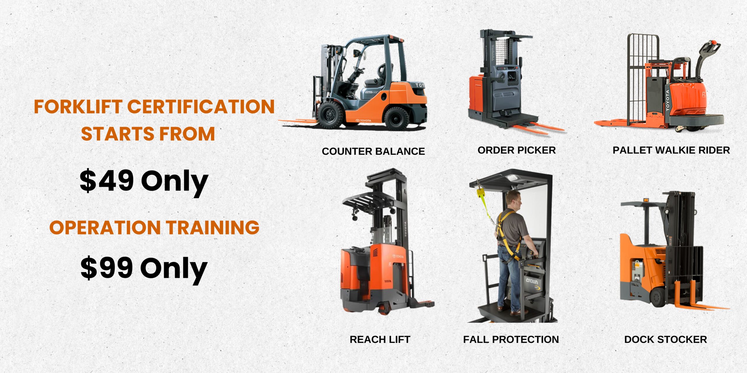 We believe everyone should have access to quality training. That’s why we offer competitive rates for all our courses, including Forklift Certification Starts from $49 Only. Check out our pricing list for more details!
